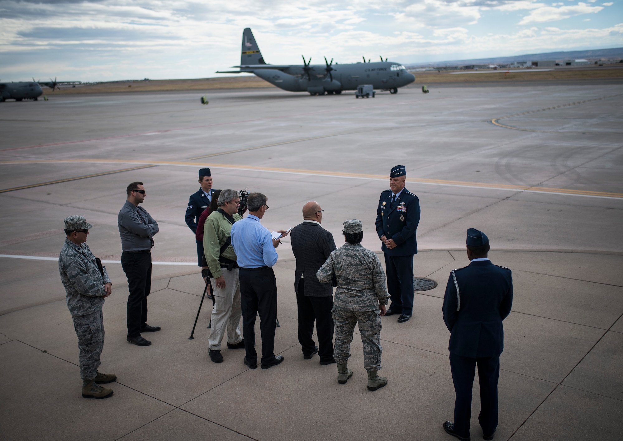 Tech. Sgt. William Marx, 21st Operations Support Squadron, salutes as the Air Force Space Command change of command ceremony begins, Oct. 25, 2016 at Peterson Air Force Base, Colo. Gen. John Raymond, previously the Deputy Chief of Staff for Operations, Headquarters Air Force, took charge of AFSPC during the ceremony. (U.S. Air Force Photo/Tech. Sgt. David Salanitri)