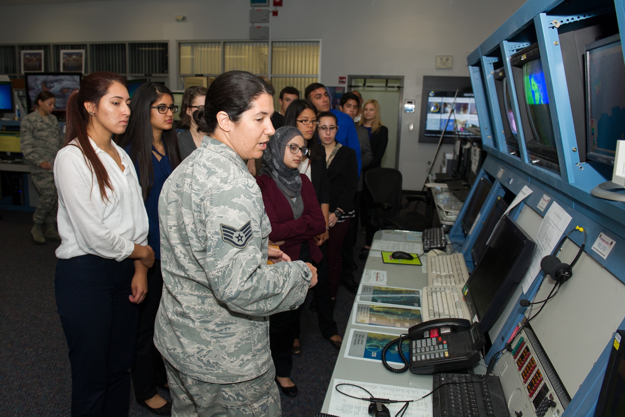 Members of the 45th Space Wing Weather Squadron met with Lake Nona High School students at Cape Canaveral Air Force Station, Fla. May 23, 2016, to discuss their Lightning Launch Commit Criteria (LLCC) findings and results in regards to weather and climatology. Prior to the school year, Bill Roeder, 45th Space Wing Weather Squadron meteorologist, reached out to the high school and introduced them to the project. The project provides students with real-world experience by following a business model of preparation, set-up, and using innovative methods to complete it. During the visit, the students also met with leadership and toured the Morrell Operations Center. (U.S. Air Force photos/Benjamin Thacker/Released)
